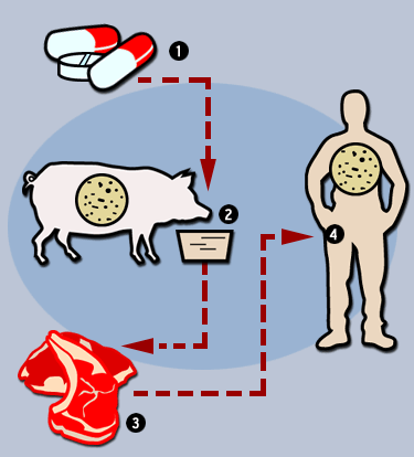后来,2002年的时候,又有人在食用被喂养抗生素的猪肉后,被发现身体中有了对抗生素已耐药的沙门氏菌。