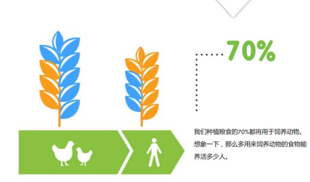让我们回到根本问题上:70%种植的粮食,其实都去当了饲料。想一想,如果这70%种植出来的粮食,拿来喂人,可以喂饱多少人?
